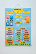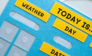 A handcrafted felt calendar with movable velcro pieces for months, days, and dates. Includes a clock wheel for seasons and weather blocks to make learning about time fun and interactive for kids!