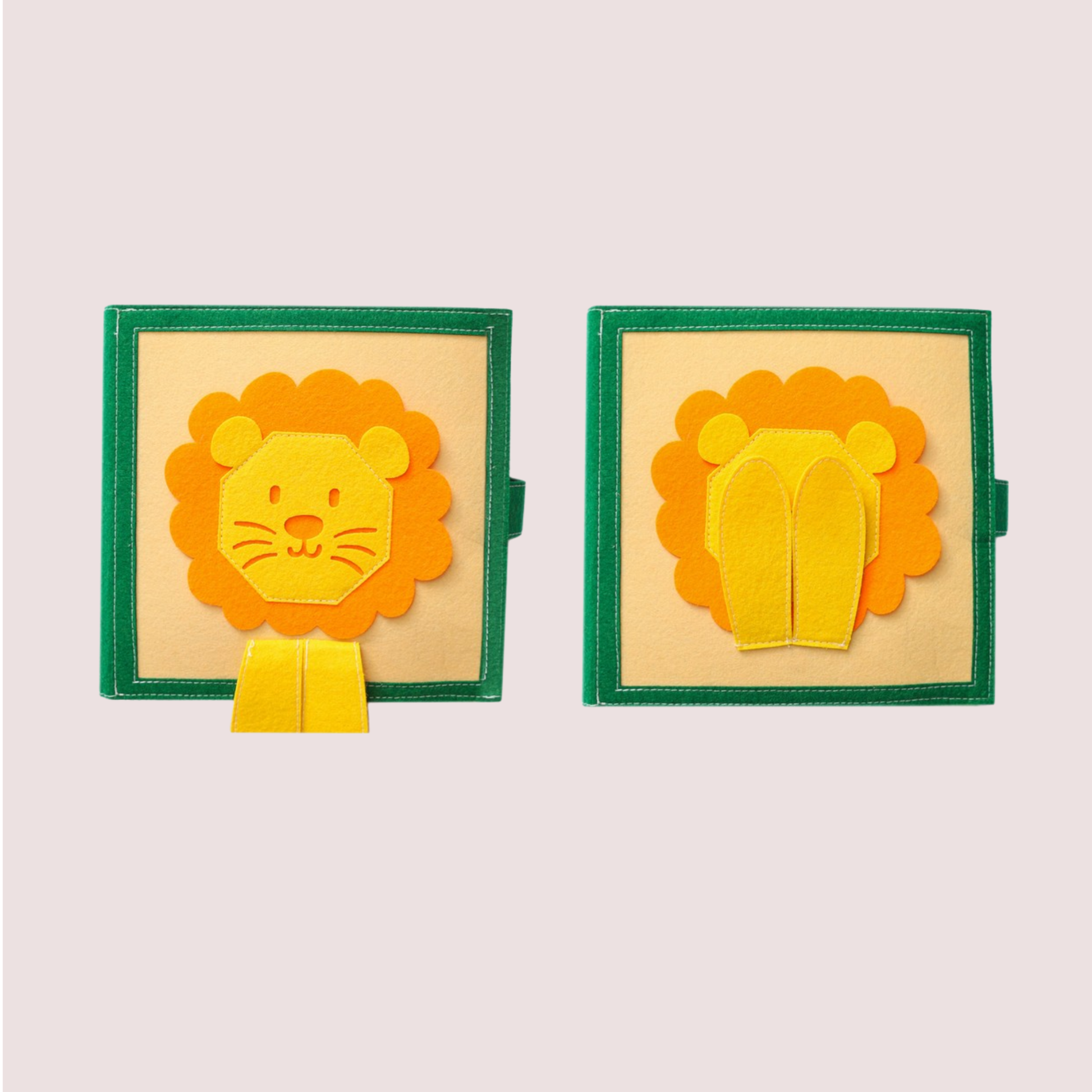 The Peek-a-boo Lion quiet book is designed with toddlers in mind that are starting to learn associations of colours and shapes and beginning to understand how things interact with each other.